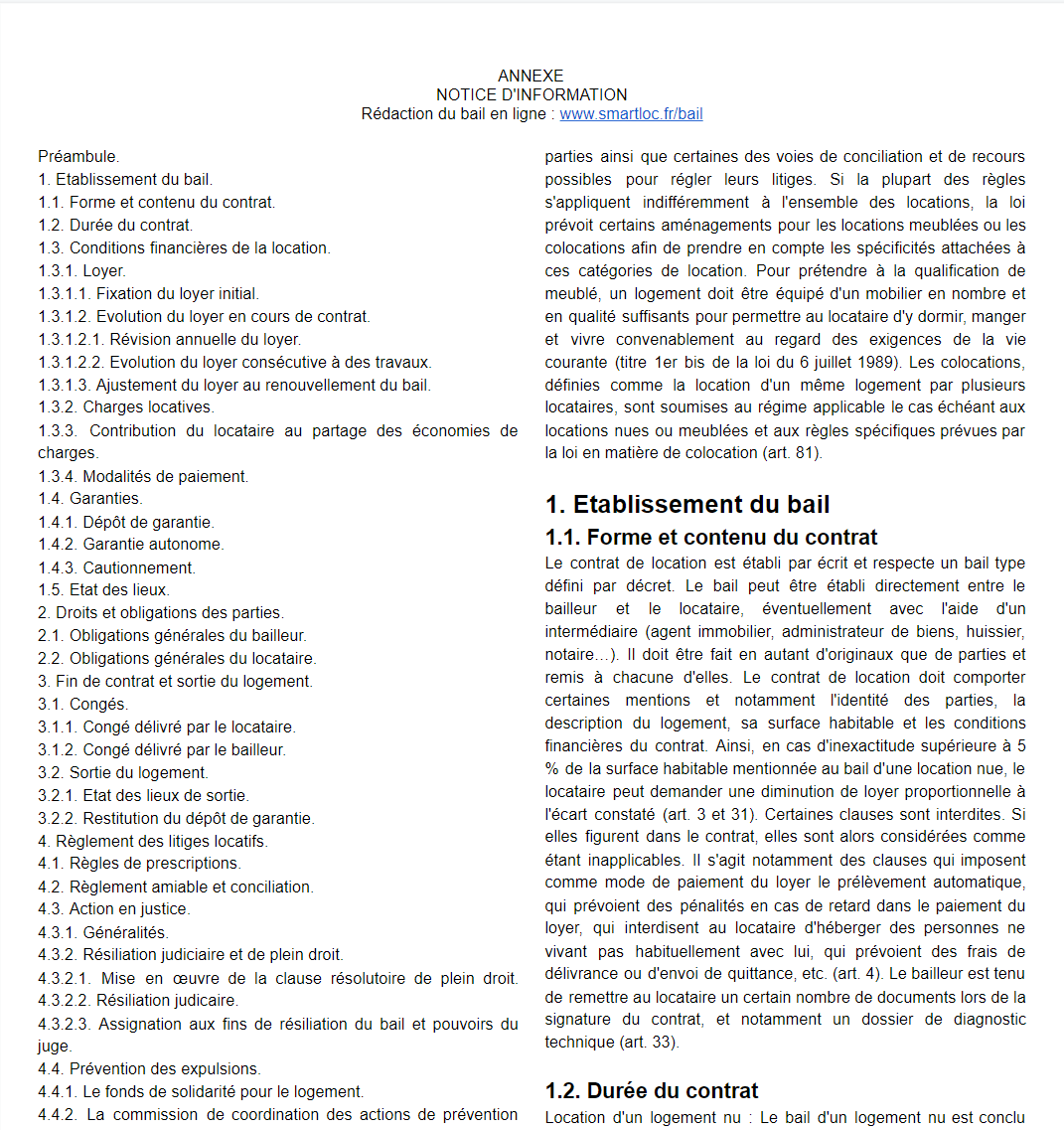 Le présent contrat type de location contient uniquement les clauses essentielles du contrat dont la législation et la réglementation en vigueur au jour de sa publication imposent la mention par les parties dans le contrat. Il appartient cependant aux parties de s’assurer des dispositions applicables au jour de la conclusion du contrat.